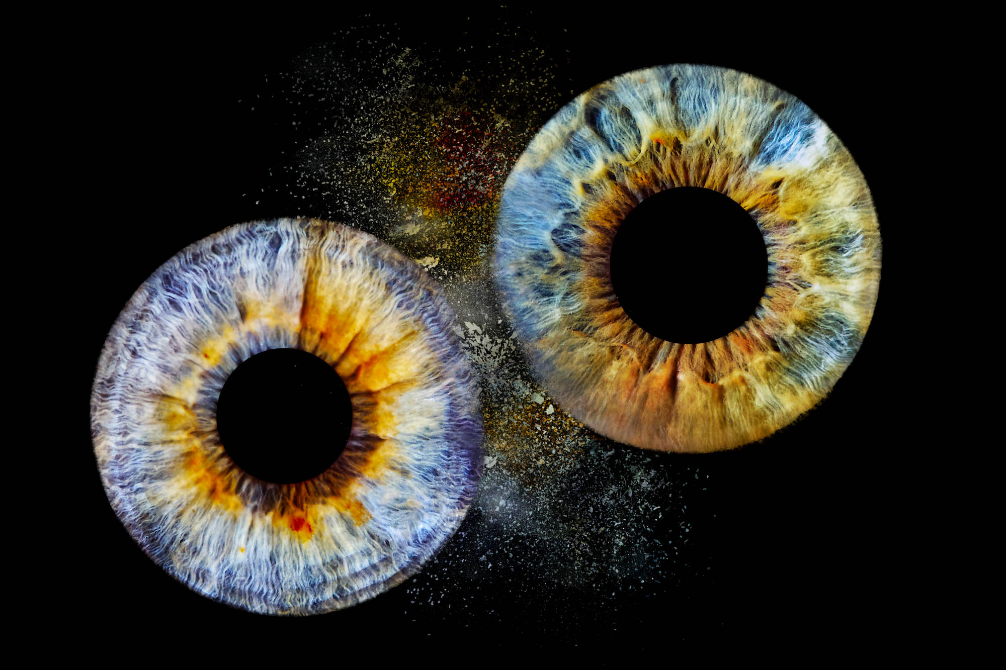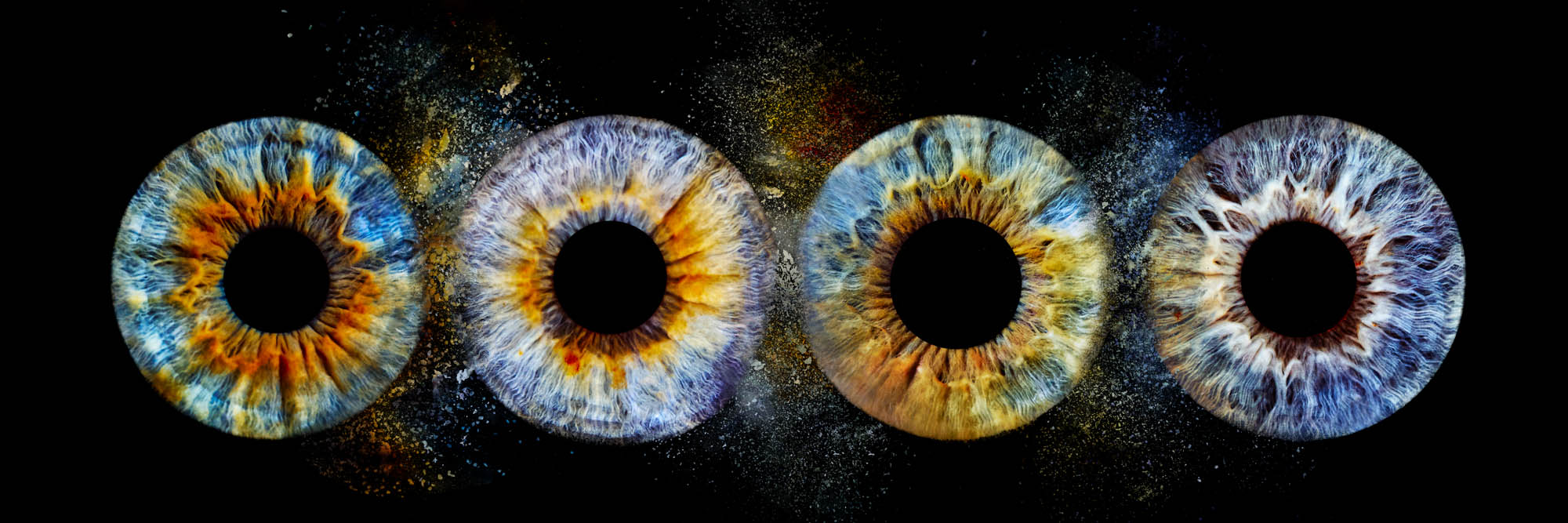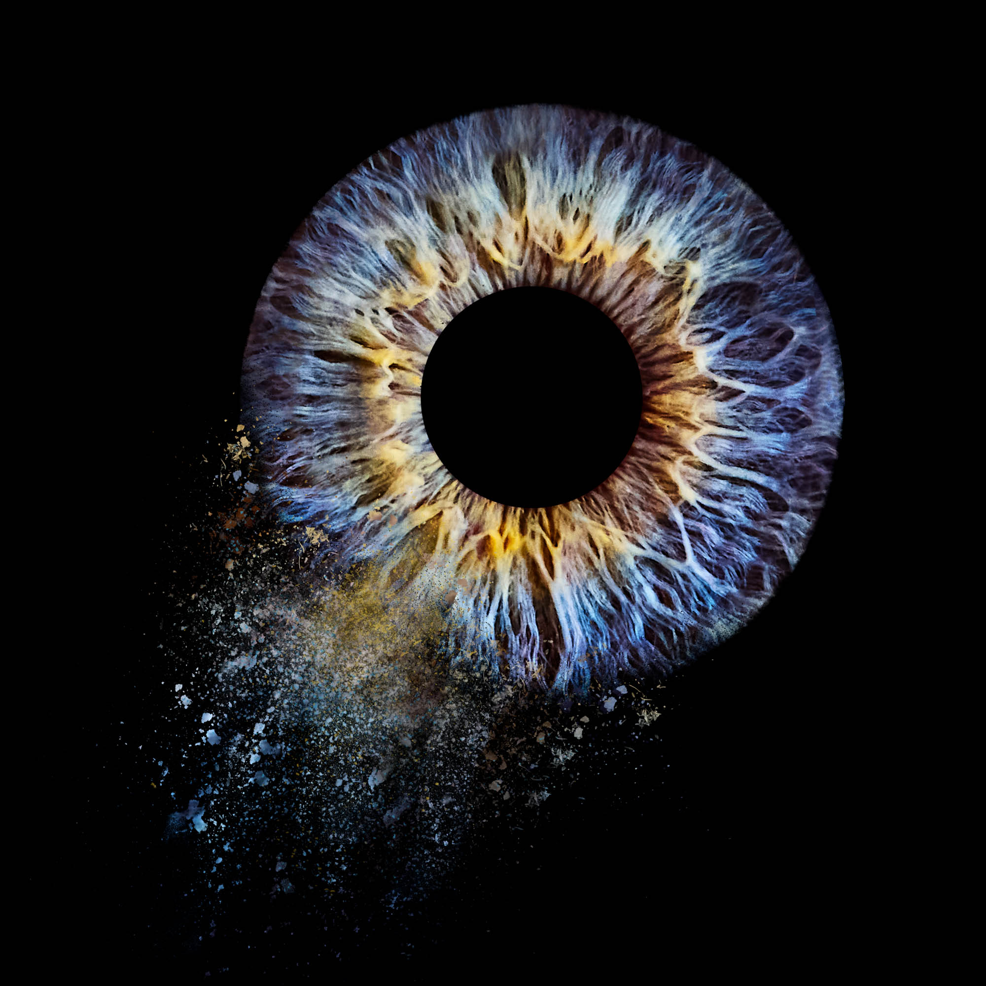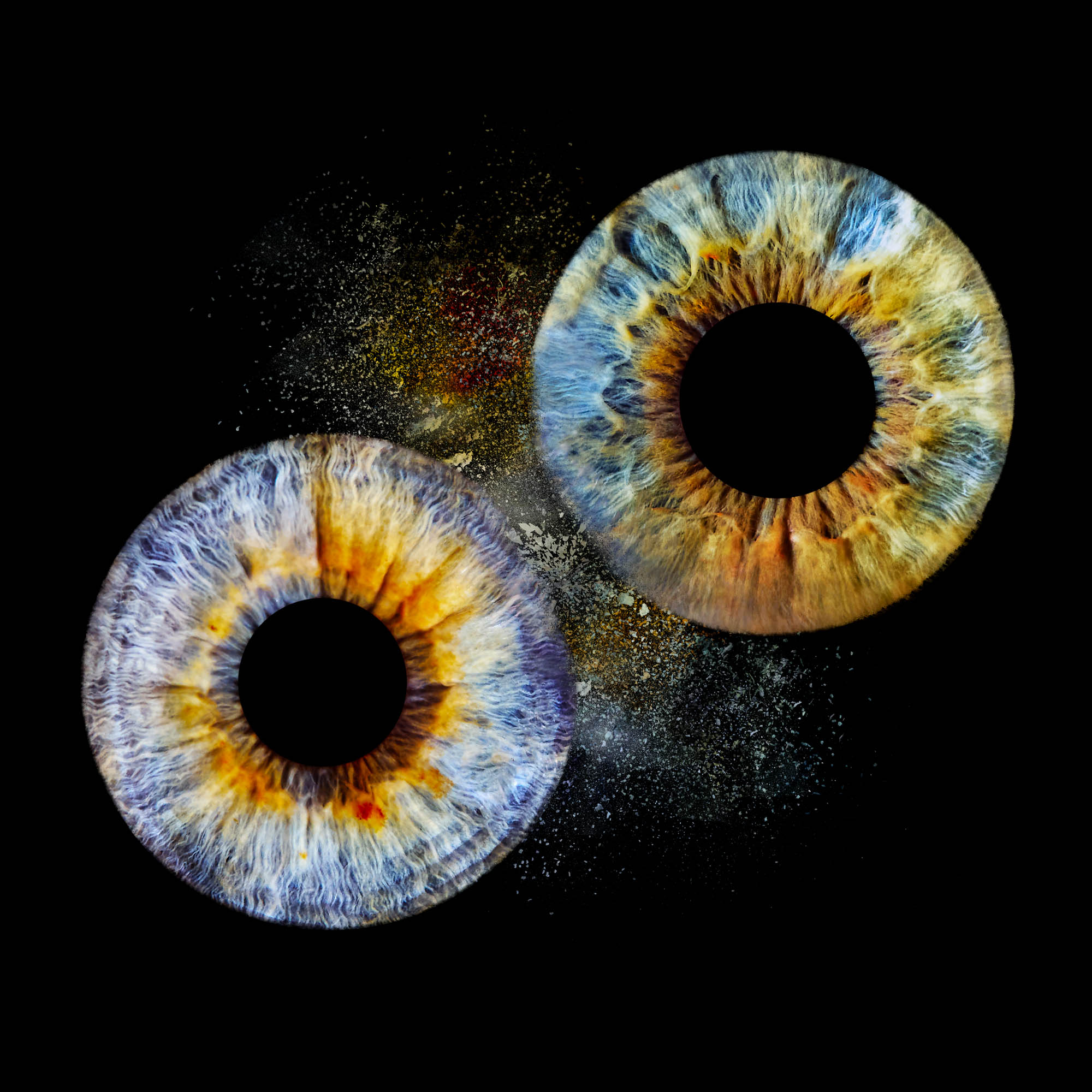 Wie eine kleine Galaxie winden sich Farbpigmente um deine Iris. Lass dich in Schwerelosigkeit von den Farben deiner Iris tragen.
